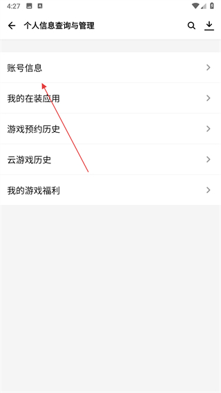 3、在個(gè)人信息查詢與管理頁(yè)面,點(diǎn)擊賬號(hào)信息。