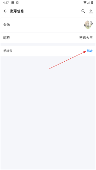 4、進(jìn)入賬號(hào)信息頁(yè)面,點(diǎn)擊手機(jī)號(hào)右側(cè)的綁定。