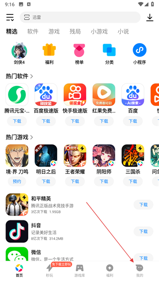 1、打開應(yīng)用寶APP,點(diǎn)擊右下角我的選項(xiàng),進(jìn)入個(gè)人中心頁(yè)面。