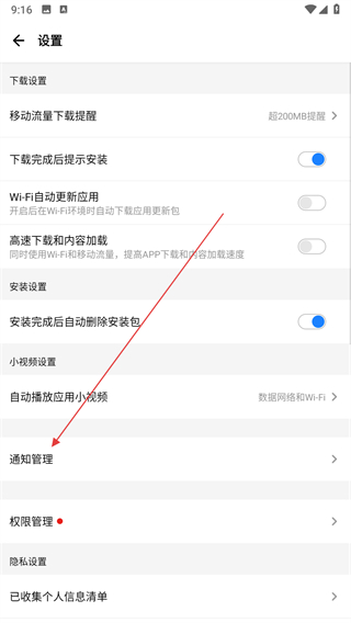 3、在設(shè)置頁(yè)面,找到通知管理選項(xiàng),點(diǎn)擊進(jìn)入通知管理頁(yè)面。