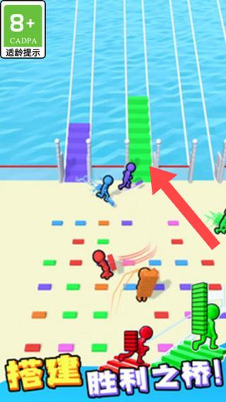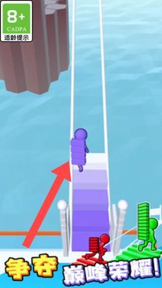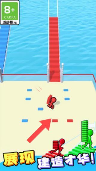 3、競速對抗技巧:在多人競技中,可通過加速移動搶占更多木板,在對手搭橋時進行干擾,利用地形優(yōu)勢規(guī)劃最短路徑,爭取抵達終點。