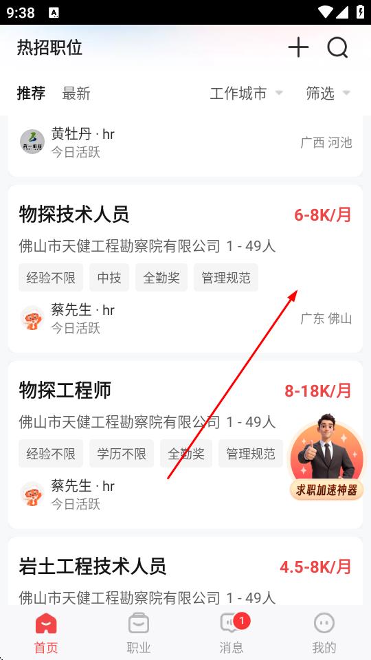 2、進(jìn)入App首頁,在熱招職位中找到想要應(yīng)聘的職位,點(diǎn)擊進(jìn)入職位詳情頁面。