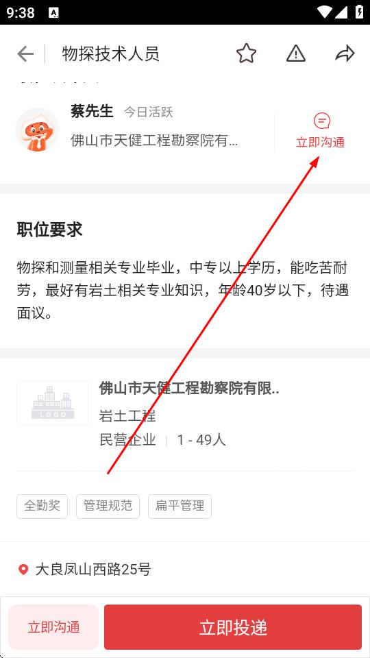 3、在職位詳情頁面,點(diǎn)擊立即溝通按鈕。