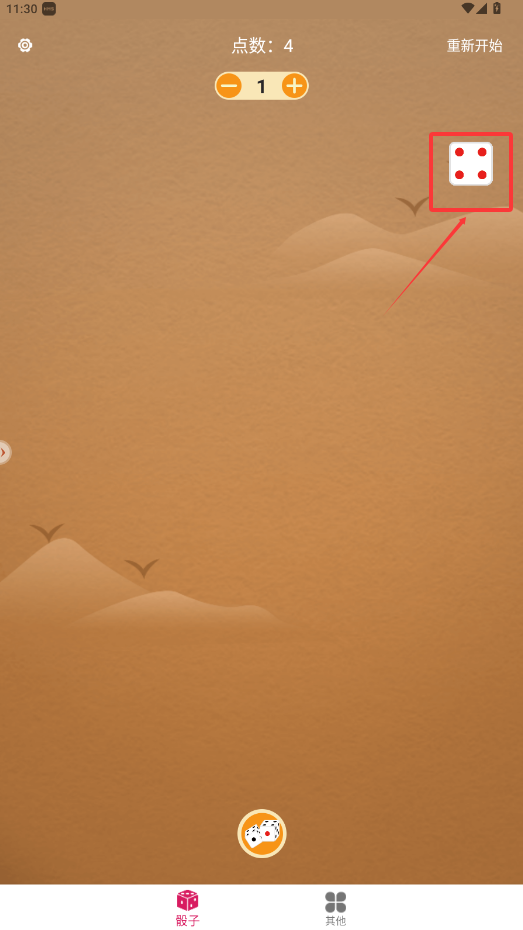 2、點擊之后會出現(xiàn)一個骰子,適合聚會時游玩。