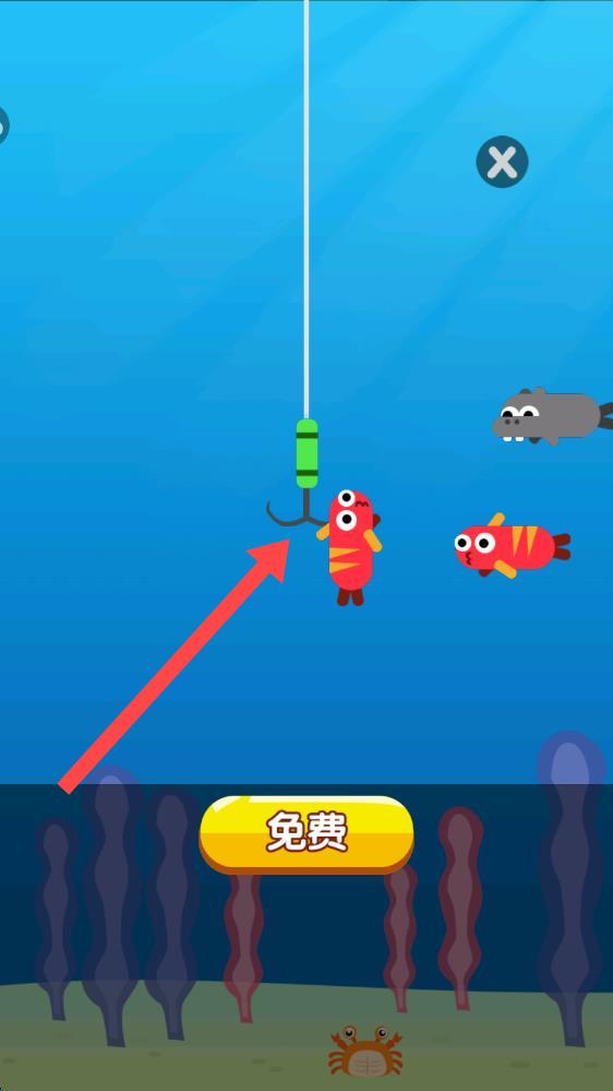 2、當(dāng)小魚游到魚鉤正下方時,點擊【免費】,開始釣魚。