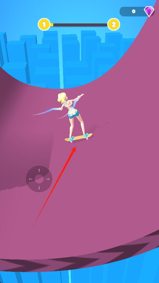 3、操控滑板移動:通過不斷滑動屏幕控制滑板左右移動,靈活應對各種賽道情況。