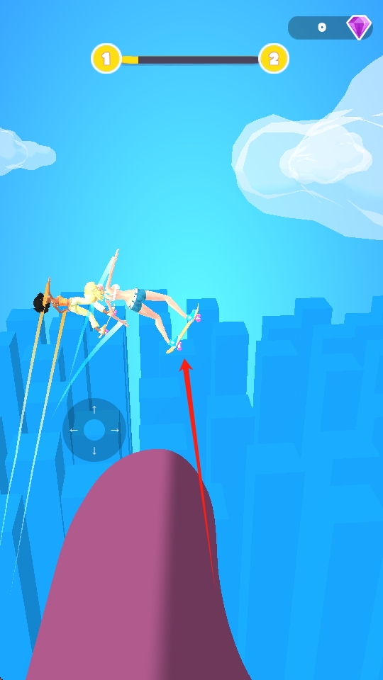 3、控制角色滑向高處到達終點即可通關(guān)。