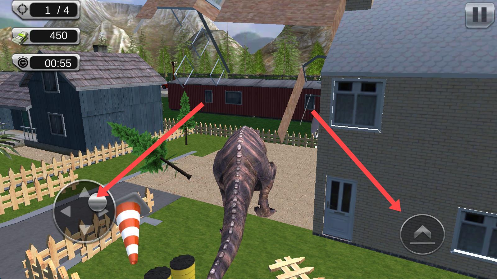 1、自由破壞體驗:可隨意操控霸王龍毀壞房屋、撕咬車輛,摧毀越多收獲金幣越多,暢享破壞快感,感受無拘無束的破壞樂趣。