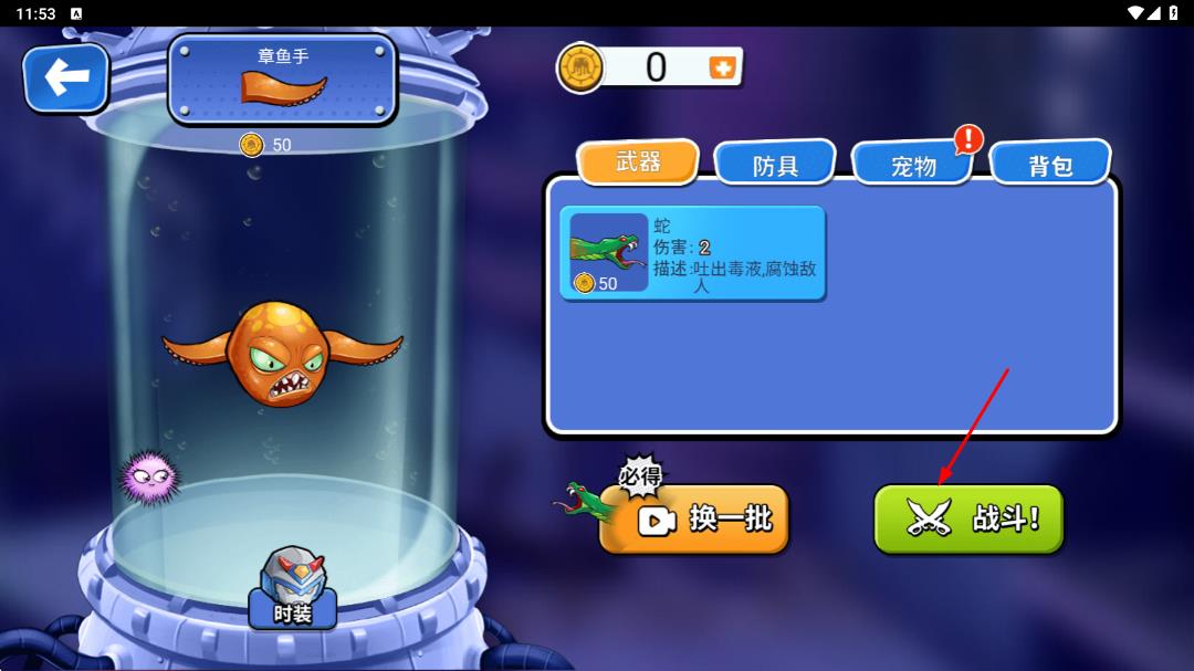 2、裝備好武器和護具等,點擊【戰(zhàn)斗】,開啟毛蝦。