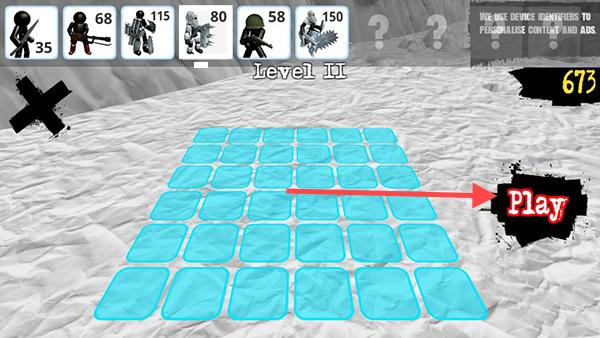 2、策略布陣系統(tǒng):設(shè)置遠程后排輸出、近戰(zhàn)前排防御的陣型規(guī)則,根據(jù)僵尸類型調(diào)配兵種組合,如用鋼鐵火柴人抵擋重型僵尸,以火焰火柴人清理群怪,策略性布局決定戰(zhàn)斗勝負。