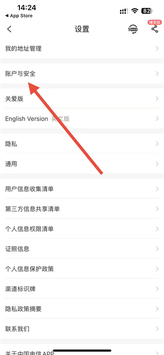 3、在設(shè)置頁(yè)面中,找到并點(diǎn)擊賬戶與安全選項(xiàng)。