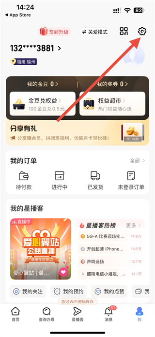 2、進(jìn)入我的頁(yè)面后,點(diǎn)擊右上角齒輪形狀的設(shè)置圖標(biāo)。