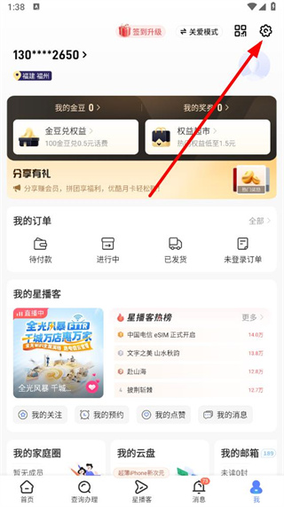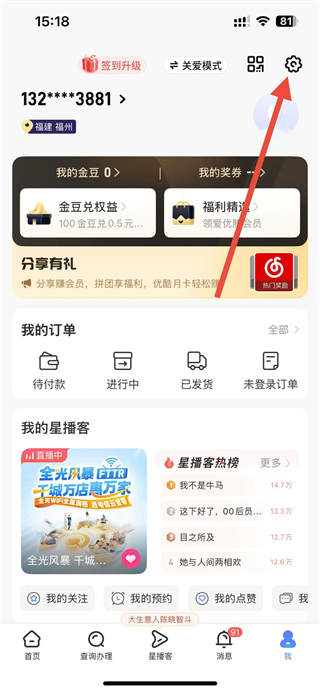 2、在我的頁面,點擊右上角的設(shè)置圖標,進入設(shè)置頁面。