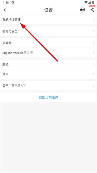 3、在設(shè)置頁面,點擊我的地址管理選項,進入我的收貨/安裝地址頁面。