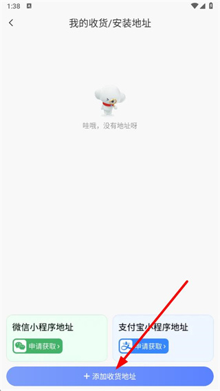 4、在我的收貨安裝地址頁面,點擊添加收貨地址按鈕,按照提示填寫地址信息并完成地址管理操作。