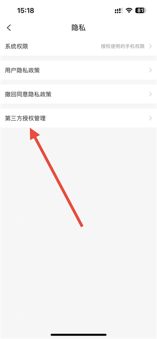 3、在隱私界面中,找到第三方授權(quán)管理選項并點擊。