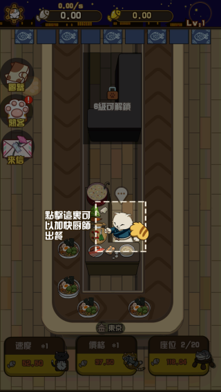 1、展示了餐廳經(jīng)營(yíng)場(chǎng)景,一只白色喵星人在廚房區(qū)域,通過(guò)點(diǎn)擊操作加快出餐、管理餐廳運(yùn)營(yíng)的玩法,展現(xiàn)出喵星人經(jīng)營(yíng)餐廳為主題的特色。