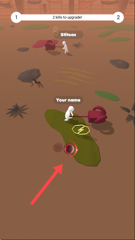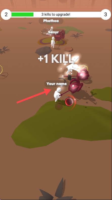 3、靠近其他角色并進(jìn)行攻擊,每成功一次會顯示【+1 KILL】,積累擊殺數(shù)升級。