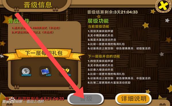 1、努力達(dá)成晉級(jí)條件,如通關(guān)無(wú)盡平常-15檔模式、聲望達(dá)2200點(diǎn)以上,爭(zhēng)取在結(jié)算剩余時(shí)間內(nèi)晉級(jí),獲取層級(jí)功能獎(jiǎng)勵(lì)及每周禮包。