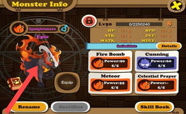 2、針對(duì)名為Ignightmar的史詩(shī)級(jí)怪物,可利用其【FireBomb】【Cunning】等技能,通過(guò)裝備道具、學(xué)習(xí)技能書等方式,提升其戰(zhàn)斗能力。