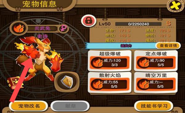3、對(duì)于炎武兔寵物,依據(jù)其【超級(jí)爆破】【定點(diǎn)爆破】等技能情況,合理安排技能書學(xué)習(xí),提升技能等級(jí),增強(qiáng)寵物整體實(shí)力。