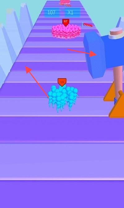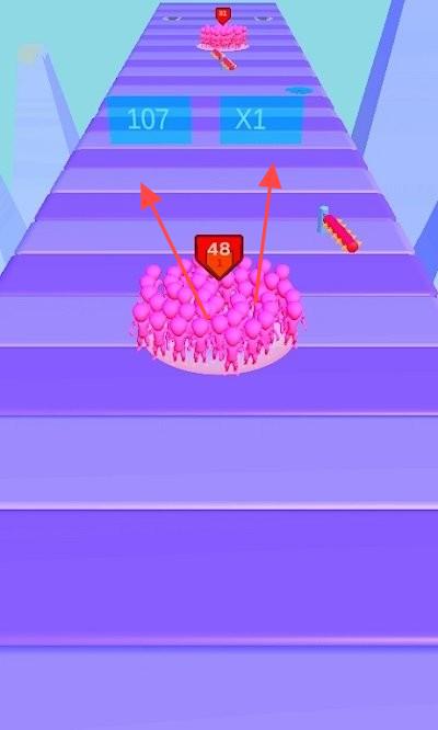 2、跑道上設(shè)有粉色和藍(lán)色的障礙團(tuán),以及大錘等機(jī)關(guān),玩家需及時(shí)躲避,避免被擊中。