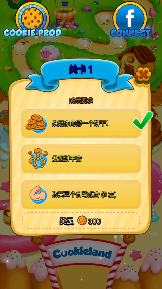 1、在關(guān)卡1中,按成績要求,先完成烘焙你的第一個餅干任務(wù)。