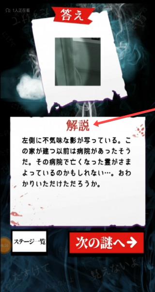 2、在解答界面,閱讀【解説】了解當(dāng)前靈異照片的解析后,點(diǎn)擊【次の謎へ→】按鈕,進(jìn)入下一個謎題繼續(xù)探索。