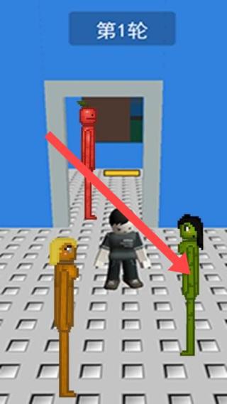3、在游戲進程中,留意不同顏色角色(如箭頭指向的綠色角色),根據(jù)游戲提示進行互動或躲避,確保順利完成第一輪挑戰(zhàn)。