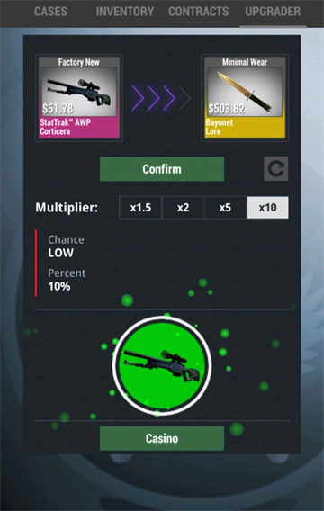 3、加入升級(jí)合約系統(tǒng)、StatTrak?特效、物品品質(zhì)等級(jí)等深度機(jī)制,模擬全流程開(kāi)箱體驗(yàn),細(xì)節(jié)拉滿(mǎn)。