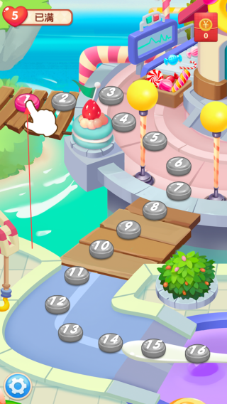 2、特效組合爆發(fā)爽感足:四消生成直線炸彈、五消觸發(fā)彩虹糖,多種特效聯(lián)動可清空大范圍糖果,體驗瞬間爆炸的消除爽快感。