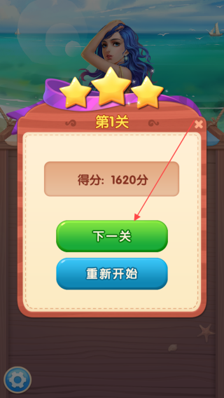 3、成功達成目標(biāo)分數(shù)通關(guān)后,點擊【下一關(guān)】按鈕,進入下一個關(guān)卡繼續(xù)游戲,體驗更多挑戰(zhàn)。