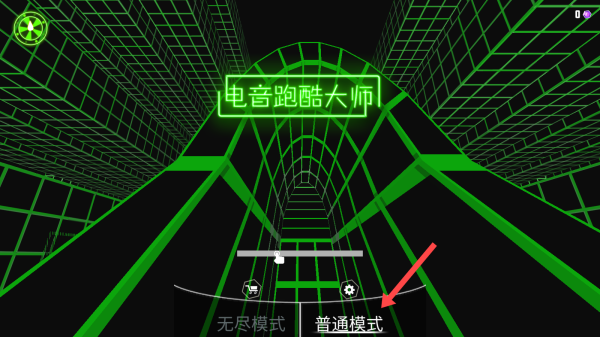 1、在電音跑酷大師游戲界面,點擊【普通模式】按鈕,進入游戲關卡。