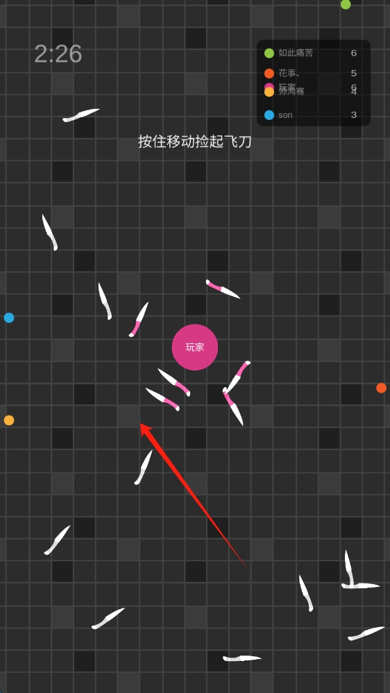 1、點擊按鈕開始游戲,松手釋放飛鏢形成防御網(wǎng),移動走位尋找機會出擊,優(yōu)先攻擊威脅大的對手。