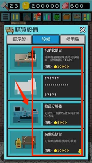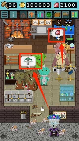 1、玩家開啟游戲后先經(jīng)營道具屋,招募木乃伊、巫妖等奇特怪獸,為怪獸分發(fā)裝備,提升隊伍整體實力,為冒險戰(zhàn)斗做好準(zhǔn)備。