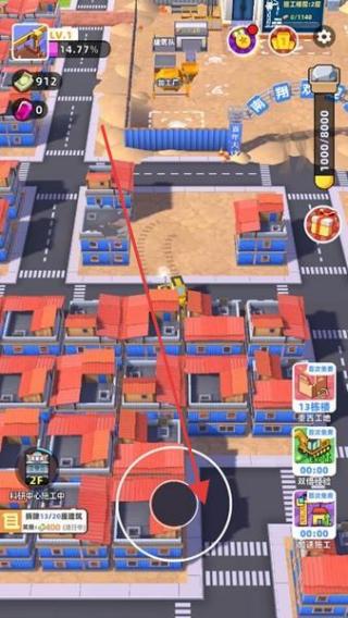 1、在城市地圖界面,跟隨紅色箭頭指向的建筑,點擊可進行建造或升級操作,開啟城市建設進程。