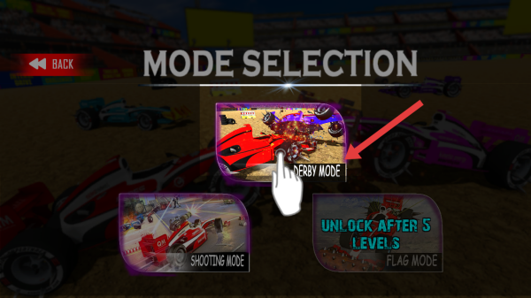 2、然后選擇并且點(diǎn)擊【DERBYMODE】的關(guān)卡模式,帶你體驗(yàn)刺激的賽車碰撞對(duì)決玩法。