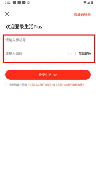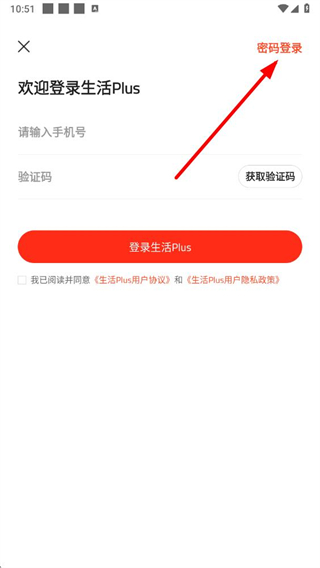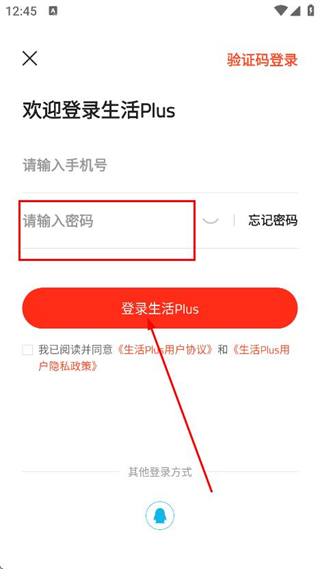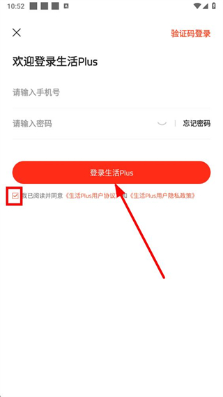 4、勾選同意相關(guān)協(xié)議后點(diǎn)擊登錄生活Plus按鈕,即可完成密碼登錄操作。