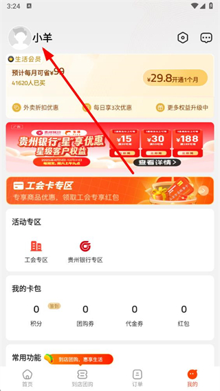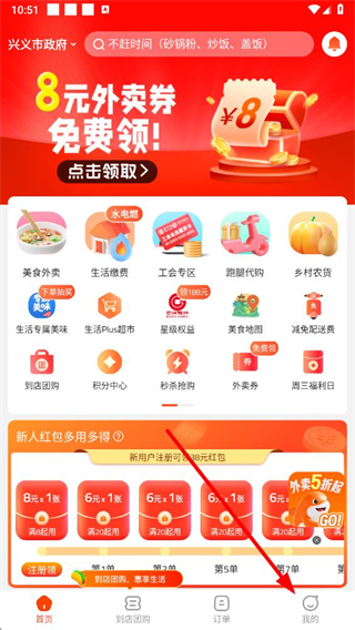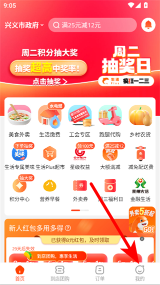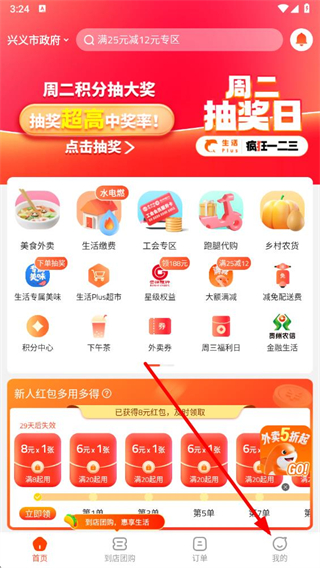 1、在生活Plus首頁點(diǎn)擊我的選項(xiàng),進(jìn)入登錄頁面。