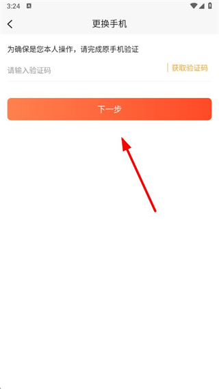 4、在更換手機(jī)頁面,輸入原手機(jī)的驗(yàn)證碼,點(diǎn)擊下一步按鈕,按照提示操作即可修改手機(jī)號。