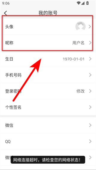 4、在我的賬號頁面,點(diǎn)擊頭像選項(xiàng)可更換頭像,點(diǎn)擊昵稱選項(xiàng)可修改用戶名。