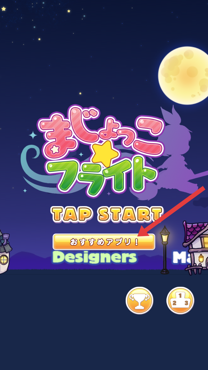 1、進(jìn)入游戲標(biāo)題界面,點(diǎn)擊【おすすめアプリ】上方的按鈕,正式開啟魔女飛行記的游戲。
