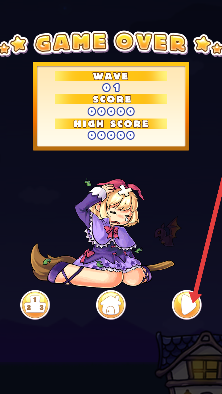 3、若游戲結(jié)束(顯示“GAMEOVER”),點(diǎn)擊右下角的按鈕,可重新開始游戲,再次挑戰(zhàn)以獲取更高分?jǐn)?shù)。