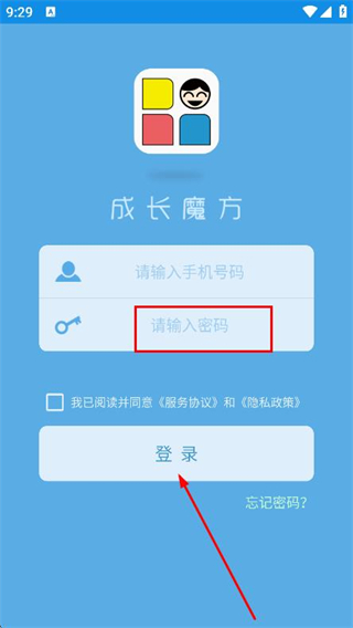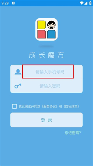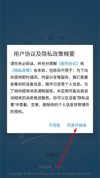 1、打開成長魔方app,在彈出的提示框中點擊同意并繼續(xù)。