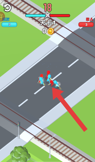 2、藍(lán)色與紅色小人分別代表不同陣營,藍(lán)紅小人正在道路上交戰(zhàn),需玩家操控一方角色,運用策略擊敗另一方,體驗對戰(zhàn)樂趣。