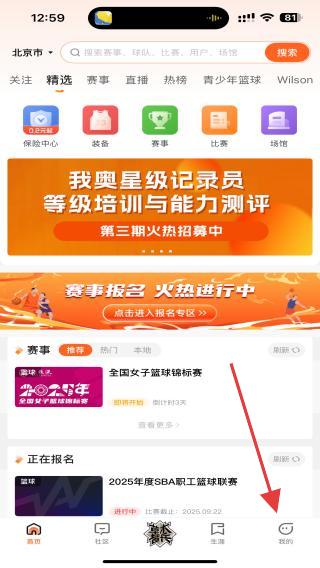1、打開(kāi)我?jiàn)W體育APP,點(diǎn)擊底部導(dǎo)航欄我的。
