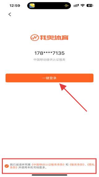 3、勾選頁(yè)面下方我已閱讀并同意中國(guó)移動(dòng)認(rèn)證服務(wù)條款和服務(wù)條款、隱私政策并點(diǎn)擊一鍵登錄的功能按鈕。