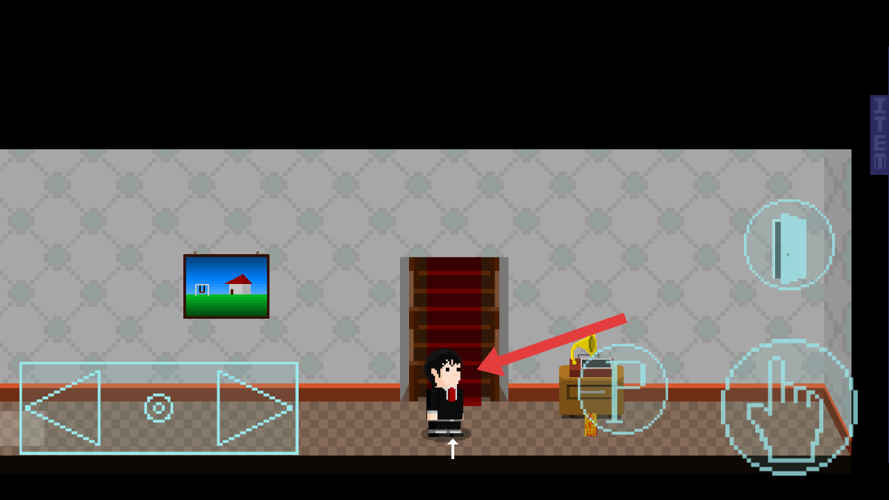 2、操控自己的角色移動至樓梯處,點(diǎn)擊可以爬上樓梯,準(zhǔn)備進(jìn)入新的區(qū)域進(jìn)行探索。