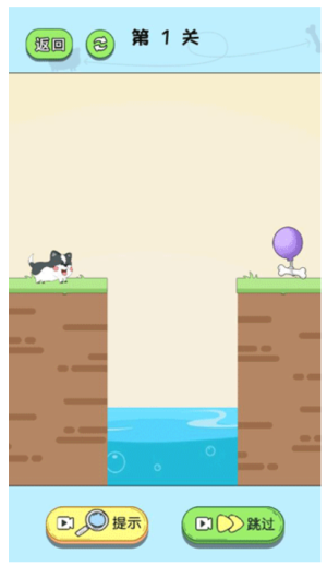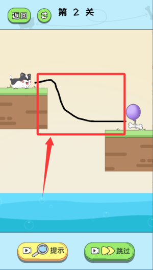 1、游戲開始先觀察地形,用手指在屏幕上畫線搭橋。注意橋梁需要連接兩岸,線條要足夠穩(wěn)固才能承受小狗重量。