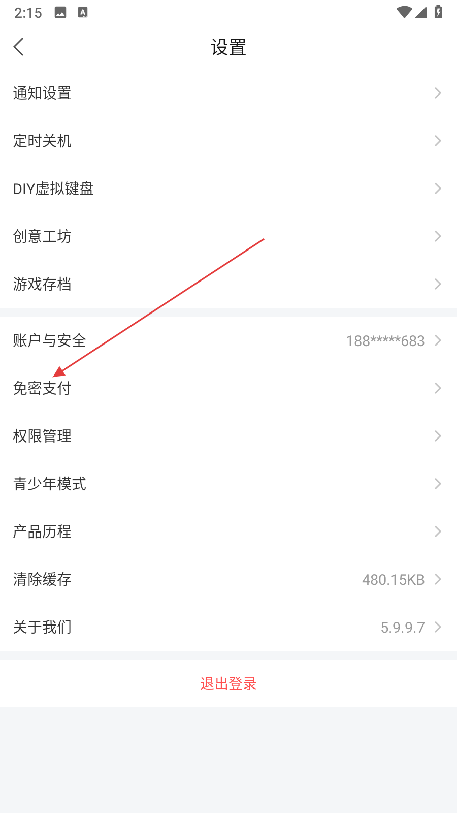 2、進(jìn)入設(shè)置頁(yè)面后,在眾多設(shè)置項(xiàng)中找到免密支付選項(xiàng),點(diǎn)擊進(jìn)入免密支付設(shè)置界面。